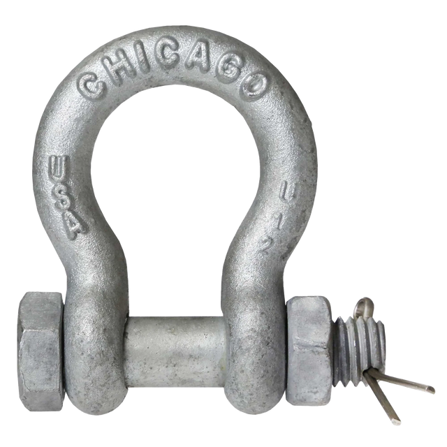 CHICAGO HARDWARE BOLT TYPE ANCHOR SHACKLES, 1 TON, 3/8", Galvanized